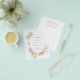 This modern wedding card has a warm, minimalist design. The front features a lively script text above your first names and date. On the back, we've set the background as transparent, so that the colour of the paper will serve as the base colour. You can choose a colour for the background, if you prefer. All aspects of this design can be edited (font, text size, or floral accents moved/removed) to fit your needs. Please contact me if you need help with this design.