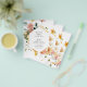 This modern wedding card has a warm, minimalist design. The front features a lively script text above your first names and date. On the back, we've set the background as transparent, so that the colour of the paper will serve as the base colour. You can choose a colour for the background, if you prefer. All aspects of this design can be edited (font, text size, or floral accents moved/removed) to fit your needs. Please contact me if you need help with this design.