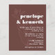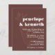 Set the tone for a stylish and intimate wedding with this modern brown wedding invitation. Featuring an elegant botanical illustration and bold typography, this design blends rustic warmth with contemporary charm. Perfect for fall weddings, earthy boho celebrations, and minimalist couples who appreciate refined simplicity. Personalise with your wedding details to create a timeless and sophisticated invite.