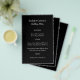 Budget wedding menu template in black with white text. Names and title at the top with paragraph for adding all menu items. Neutral palette on affordable paper that has bulk discounts.