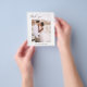 Budget Wedding Thank You Cards that have a photo on the front and back. The Thank you cards contain a modern hand lettered cursive script typography that are elegant, simple and modern to use after you minimalist simple wedding day celebration.
