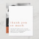 Newlywed Wedding Photo QR Code Terracotta Thank You. A budget friendly SMALLER 4.5” x 5.6” alternative. Available in a SEMI GLOSS 110 lb CARD STOCK or a SATIN FINISH 80 lb THINNER PAPER STOCK. Envelopes are an optional extra. Informal style. The header is large in stylish lowercase in terracotta with the details beneath. Lots of white space at the top for a contemporary feel! Easily personalise the text to your own details and replace the sample photo on the back with your own which will automatically change to black and white. If you wish to remove the black and white filter click customise further and chose the filter option and select No Filter. Replace the sample QR code on the back with your own leading to your online photo gallery. The terracotta background on the back can be changed to another colour if you want via the Customise Further option.