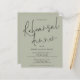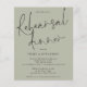 Wedding Rehearsal Dinner Light Sage Invite. A budget price SMALLER 4.5” x 5.6” alternative. Available in a SEMI-GLOSS 110 lb CARD STOCK which is the default option (thicker for invitations), OR a SATIN FINISH 80 lb THINNER PAPER STOCK (ideal for enclosures). Envelopes are an optional extra and are slightly larger than the card size. This modern sage green design has elegant informal set script for rehearsal Dinner and the rest of the typography you can easily personalise. You can also change text and background colours on either side if you wish via the Customise Further option.