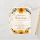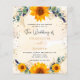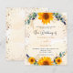 A white and golden watercolored background decorated with sunflowers, eucalyptus greenery and golden leaves and faux gold glitter dust. Personalise and add your names and party details.