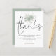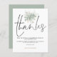 Wedding Sage Foliage Gold Script Thanks A budget price SMALLER 4.5” x 5.6” alternative. Available in a SEMI-GLOSS 110 lb CARD STOCK which is the default option (thicker for invitations), OR a SATIN FINISH 80 lb THINNER PAPER STOCK (ideal for enclosures). Envelopes are an optional extra and are slightly larger than the card size. This elegant design has a watercolor foliage motif in sage green and gold at the top with stylish set script for the header. A coordinating sage background is on the back. The rest of the text can be easily personalised to your words.