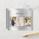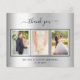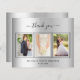 Add 3 of your own photos and a thank your note. A faux silver metallic looking background with black text and frame. The text: Thank you on the front and your names on the back are written with a stylish hand lettered script with swashes.