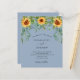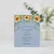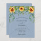 Decorated with sunflowers, eucalyptus greenery. Dusty blue background. Personalise and add your names and party details.