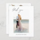 Wedding Thank You Cards that have a photo pictures and text on the front and back. The Thank you cards contain a modern hand lettered cursive script typography that are elegant, simple and modern to use after you minimalist simple wedding day celebration.