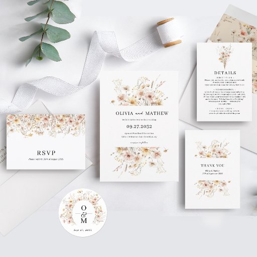 Whimsical Rustic Beige Meadow Wildflower WeddingDesigned by Vivian M