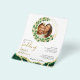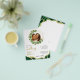 Create budget elegant emerald green wedding invitations for your jewel tone theme wedding that feature eucalyptus wreath and agate style pattern decorated with faux gold glitter. Please upload your photo using the template to have your image in a round shape. The square photo is the best, but you can also try others to see if they suit here. Personalise the invites with your names, date, place and initials on the front and back sides. You can customise even more inside the design tool.