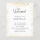 A modern, elegant wedding program, timeline. A white background decorated with faux gold glitter dust. Personalise and add your names and wedding details. Black coloured letters. If you have more text it's possible to reduce the line space.