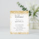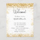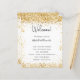 A modern, elegant wedding program, timeline. A white background decorated with faux gold glitter dust. Personalise and add your names and wedding details. Black coloured letters. If you have more text it's possible to reduce the line space.