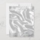 The top and bottom edges of this elegant modern wedding invitation feature a white and grey watercolor agate border trimmed with faux silver glitter. The customisable text combines handwriting, sans serif and italic fonts in charcoal grey on a background image of white silk. The reverse side features a matching agate and silk design.