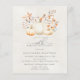 Elegant white pumpkins are nestled in red, orange and sage green leaves and wildflowers.