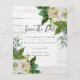 *** TRANSFER TO FLAT CARD FOR MORE CARD/PAPER/ENVELOPE OPTIONS *** White Roses and Green leaves bouquet of flowers (watercolor) floral wedding stationery. Can be used for save dates, invitations, rsvp, with text fields on both sides to add additional information including menu, directions, reception and venue details, gift registry. You can also add images such as a QR scanning code etc.