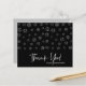 These black flat thank you notes are an excellent value printed on 110 lb paper and feature a dotted design, the words "Thank You" and your name in chic white lettering. Perfect thank you notes for your wedding, bridal shower, baby shower, birthday, anniversary, graduation, or any special event. WHITE envelopes are optional. Measures 4.5" x 5.6", but you can choose from 3 paper sizes. MORE COLORS in our store.