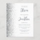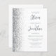 The left-hand edge of this elegant modern wedding invitation features a silver faux glitter border. The customisable text combines grey script and sans serif fonts on a white background. The reverse side provides space for wedding details on a solid white background, along with a QR code guests can scan to visit your website and RSVP, which saves the cost of printing and mailing separate RSVP cards.