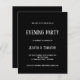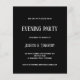 Budget White Text Black Evening Party Invitation. 100% customisable. A modern typographical design on a smaller 4.5 x 5.6" budget price semi-gloss card (similar to the thickness of a postcard) to invite your evening guests to you wedding. Colours can be changed if required via customise further.