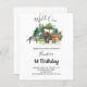 Wild One, woodland themed birthday party. A white background with watercolored forest and forest animals, wolf, bear and deer. Personalise and add a name and party details.