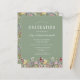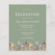 A beautiful watercolor floral border of wildflowers decorates the bottom edge of this trendy boho graduation party invitation. Customise the white text on a sage green background with the graduate's name in handwriting script; the school and class year in sans serif; and the date, venue, and RSVP details in serif font. The back of the card features a coordinating pattern of wildflowers on a sage green background.