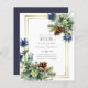 Blue Thistles, Pine cones, Eucalyptus leaves, winter wonderland wedding themed wedding invitation , part of a larger collection which includes invitations save the dates rsvp's bridal party gifts etc. For Christmas or winter wedding planning guide theme ideas and more visit weddingdesignchic.com.