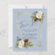Beautiful white Roses, Eucalyptus leaves, rustic pine cones, and a gold frame feature on this winter wedding item which is part of a larger collection that includes budget wedding invitations, save the dates, RSVPs, labels, gifts, stationery, and more. For a FREE winter wedding planning, guide visit weddingdesignchic.com.
