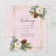 Beautiful white Roses, Eucalyptus leaves, rustic pine cones, and a gold frame feature on this winter wedding item which is part of a larger collection that includes budget wedding invitations, save the dates, RSVPs, labels, gifts, stationery, and more. For a FREE winter wedding planning, guide visit weddingdesignchic.com.