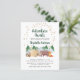 Budget-friendly rustic virtual baby shower invitation featuring a cute illustration of woodland animals with their tent camping in the mountains and forest, an overlay of gold stars and "Adventure Awaits" and the mother-to-be's name in a dark hunter green script. Easily personalise the shower details and add an online link or text number or email address to obtain the link.