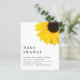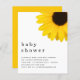 Yellow Sunflower Baby Shower Invite. A budget friendly SMALLER 4.5” x 5.6” alternative. Available in a SEMI GLOSS 110 lb CARD STOCK or a SATIN FINISH 80 lb THINNER PAPER STOCK. Envelopes are an optional extra. A giant sunflower is at the top right and the heading is large below in stylish lowercase with the details at the bottom. Easily personalise the text to your own details.