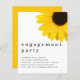 Budget Yellow Sunflower Engagement Party Invite. A budget friendly SMALLER 4.5” x 5.6” alternative. Available in a SEMI GLOSS 110 lb CARD STOCK or a SATIN FINISH 80 lb THINNER PAPER STOCK. Envelopes are an optional extra. Informal style. A giant sunflower is top right and the heading is large below in stylish lowercase with the details at the bottom. Easily personalise the text to your own details.