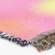 A quality printed throw has its advantages. This is a much finer weave throw than its loopier cousins, and though lighter, it is worth the investment for custom room accessorizing. The back is much prettier than the typical brown, and the fringe on the long sides very vivid, the selvage nicely done. Before photographing, I washed the throw in cold water, delicate, with a thicker woven throw the same size. On tumble dry low, this throw was dry in half the time as the other. This is a very practical quality if you use throws for furniture covers or to wrap up in frequently. The sleekness of the fabric makes it a great layer for accenting or protecting without the feeling of sitting on too much stuff. Perfect for napping or when you feel a light chill coming on. The color printing is beautiful and on this fabric, matched the design and color of my Photoshop image. This is an advantage for blending room fabrics and colors. The fringe on the short sides prints the colors from the design image and therefore varies from the side fringe. I streaked a white fractal line through the plaid pattern to give the illusion of weaving. This printed as crisp as an illusory thread, and put some white in the short side fringe, showing another advantage of print vs loomed- for artistic purposes, line lines, detail, and color integrity can be planned and preserved. My loomed throws have color limitations and more of a needlepoint texture. Print throws reproduce an exact image. The throw felt a little stiff straight out of the package, but this went away in the first delicate wash. Of course I searched the wash water for ink or bleeding and there was none.