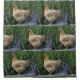 This fun shower curtain features a buff orpington hen against a background of ornamental grass and Russian sage.