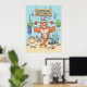 A hilarious cartoon shrimp pumping iron at a beach gym with kettlebells, crabs, octopus, and puffer fish cheering on. Perfect funny wall art for fitness lovers and ocean fans. add text or images to customize and make it personalized.