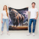 Buffalo and Wolf in a Thunderstorm with Lightning Fleece Blanket