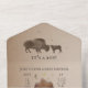 Baby shower theme with illustrations of a mama and baby buffalo, desert mountains with stars and moon, and evergreen trees with cardstock inspired background. Tear away books for baby card attached to bottom.