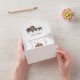 Baby shower theme with illustrations of a mama and baby buffalo, desert mountains with stars and moon, and floral cactus with watercolor inspired design. Tear away books for baby card attached to bottom.