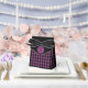 Black and purple buffalo check tent favour box. Text is customisable. If you use the 'edit design' button/tool, you can also add your own images/photos as well. Other colorways, shapes and box size available.