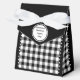 Black and white buffalo check tent favour box. Text is customisable. If you use the 'edit design' button/tool, you can also add your own images/photos as well. Other colorways, shapes and box size available.
