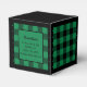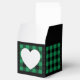 Heart green and black buffalo check favour box. Text on the back of the box is customisable. If you use the 'edit design' button/tool, you can also add your own images/photos. Other colorways available.