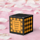 Classic orange and black buffalo check favour box. Text on both sides of the box is customisable. If you use the 'edit design' button/tool, you can also add your own images/photos. Other colorways available.
