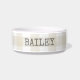 This personalised dog bowl features a beige and white buffalo check pattern with your dog's name in grey retro typewriter font. The perfect pet accessory to fit in with your farmhouse decor.