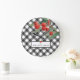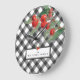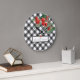 Buffalo Check Plaid Black White Family Name Custom Large Clock is the perfect addition to your rustic kitchen decor. Featuring a popular black and white buffalo check pattern with red berry accents, along with your family's name in a classic font, you will love this pretty personalised wall clock. Personalise by clicking "Customise It"!