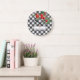 Buffalo Check Plaid Black White Family Name Custom Large Clock