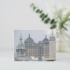 Travel postcard that features a scenic photo image view of historical landmark buildings of downtown Buffalo, New York, including the Old County Building.