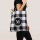 Buffalo Pattern Monogram Holiday Black and White Tote Bag