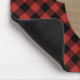 A mousepad featuring a red and black heritage (buffalo) plaid pattern. Centre features a burlap inspired illustration of an 8 point buck deer head silhouette. Personalise the initial on deer.