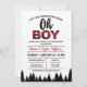 Oh Boy! This front-and-back printed plaid invitation is perfect for a co-ed baby shower to celebrate the arrival of a baby boy. Includes red and black buffalo check pattern & tree silhouette.