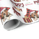 The repeated pattern on this cute Christmas wrapping paper is an image of an adorable Basset Hound puppy wearing a red and white Santa hat, with a black and red buffalo plaid pillow behind him, and a coordinating gift package with a gold ribbon beside him. There's also a buffalo plaid bow and the matching text that says "JOY". Stylised red and black buffalo plaid text says MERRY CHRISTMAS", and your own signature is in two fields for you to customise.