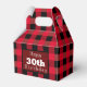 Celebrate a milestone birthday with black and red buffalo plaid party favours. Change age to suit.