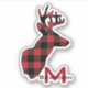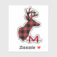 A silhouette deer head image is filled with a bright red and black buffalo plaid pattern on this contour sticker. Below the deer image is your monogram in red, with your name in black written across it. Unique!